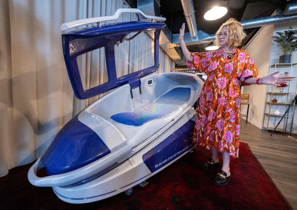 Este dispositivo de aspecto futurista, llamado Sarco, por sarcófago, está diseñado para que las personas puedan quitarse la vida pulsando un botón que libera nitrógeno en el interior de la cápsula.